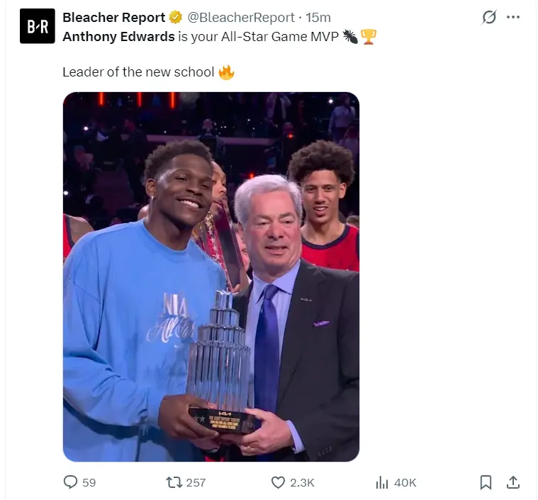 在全明星正赛前,文班亚马的AMVP概率是最高的,爱德华兹只有9%,最终他却带队夺冠拿到了AMVP。