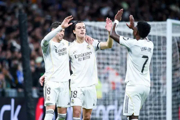 第25分钟,维尼修斯禁区左路被阿兰布鲁放倒,巴西人随后亲自主罚点球命中。皇马2:1再度领先。6分钟后,巴尔韦德接卡雷拉斯传球,禁区前沿推射破门,为皇马将比分扩大至3:1。